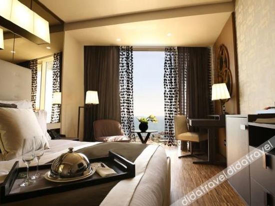 The Charming Room executes exceptional accommodations standards. The 35 sqm space offers a king-size bed, desk, marble bathroom, and a sitting area that takes in endless views of the sea from the panoramic glass façade.